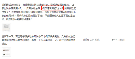 而最让周女士不满的是,本是冲着“视频通话”功能购买的电话手表,但每次视频通话2分钟后,通话便会因发热问题自动关闭。“小天才各方面都不如先前购买的那款,但是用户多,没办法,只能用它”周女士无奈道。