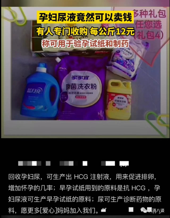 实际上,在网上有关回收孕妇尿液的内容不少,有的是支付现金回收,还有的是赠送洗衣液、卫生纸等日用产品。