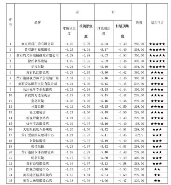 ❎ 黄石港区精益眼镜店、黄石大光明眼镜总店两家店销售的近视配装眼镜样品,球镜数据测试项目不符合国家标准;