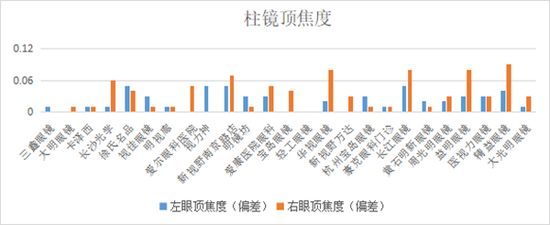 ▲柱镜顶焦度偏差测试结果(数值越小越好)。