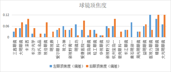 ▲球镜顶焦度偏差测试结果(数值越小越好)。