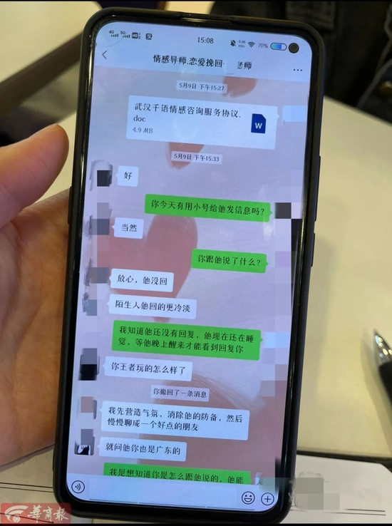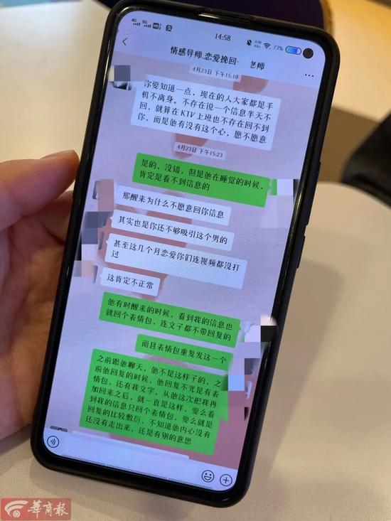 “这家公司跟我签了服务协议,问了我很多问题,也制订了挽回方案。”池清说,服务协议从4月8日开始,为期一个月,这期间她都在跟情感老师沟通,按对方的话术虽然加上了微信,但网恋男友依旧是冷言冷语。