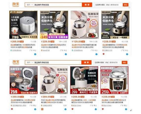 此外,工作人员调查时,在淘宝上搜索发现,不少店铺销售的低糖电饭煲在名称上直接用“高血糖专用电饭煲”“降糖”“脱糖”等内容,有误导消费者之嫌。