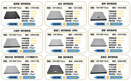 测试结果显示,20款棕纤维弹性床垫样品中,有9款样品综合表现卓越,获评五星。