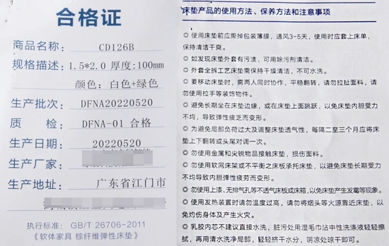 05、棕纤维弹性床垫的标签标识信息完整吗?