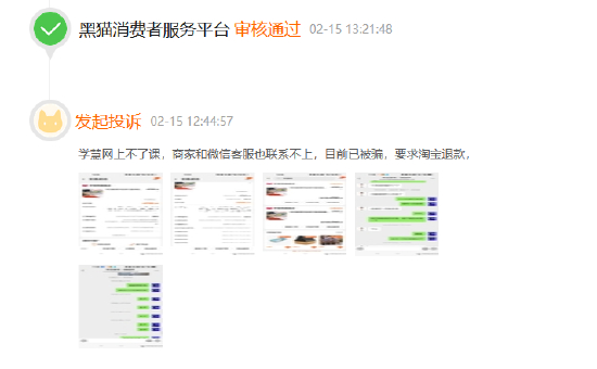 还有投诉人称,学慧网上不了课,商家和微信客服也联系不上,目前已被骗,要求退款。