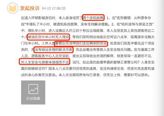 315晚会曝光游乐设施安全隐患 黑猫平台景区安全投诉超百单