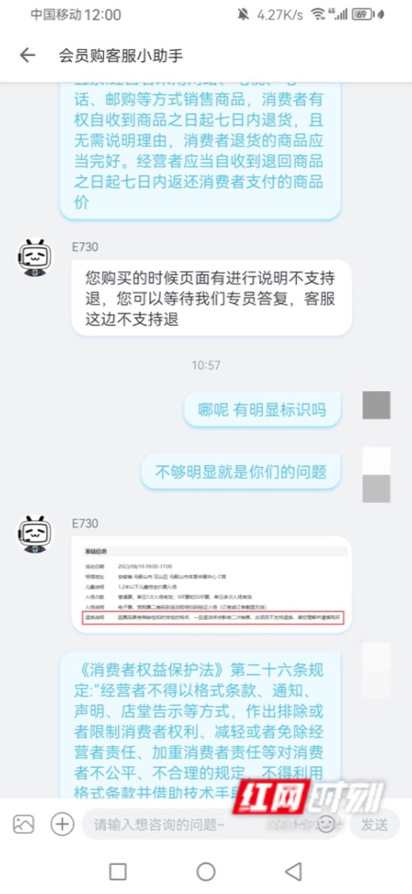 虽然网站客服曾致电郁女士沟通,但最终表示的处理结果就是不会退款。30日,记者再次通过该网站会员购客服专线致电,工作人员告知:就此服务单“客服人员已给到最终回复,确实是不支持退款”,并表示“这一问题经过多方核实,已经给出最终处理方案,没有办法再次反馈。”