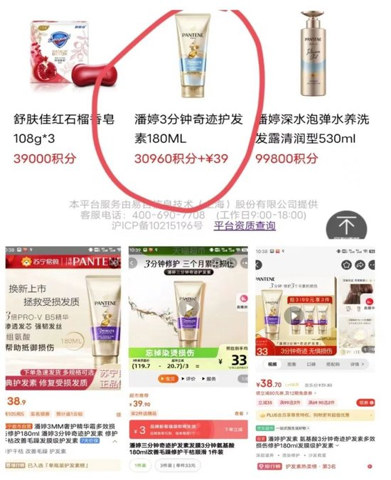 据上海市消保委调查,上海银行积分商城一款“潘婷3分钟奇迹护发素180ML”,其单价为“30960积分+39元”。也就是说,消费者购买此商品除扣除30960积分外,还需支付39元。但是在其他多个电商平台搜索发现该款商品的市场价格区间也就38元、39元左右。