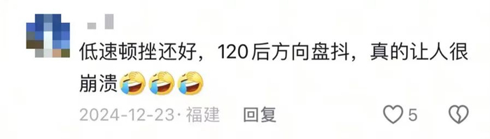 “低速顿挫还好,时速120后方向盘抖,真的让人很崩溃!”