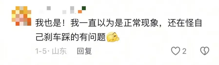 “我也是!我一直以为是正常现象,还在怪自己刹车踩得有问题。”