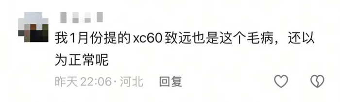 “我1月份提的XC60致远也是这个毛病,还以为正常呢。”