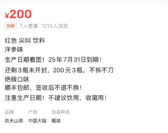 临期红色尖叫被炒到200元一瓶,网友:当初不是因为难喝才停产的吗?