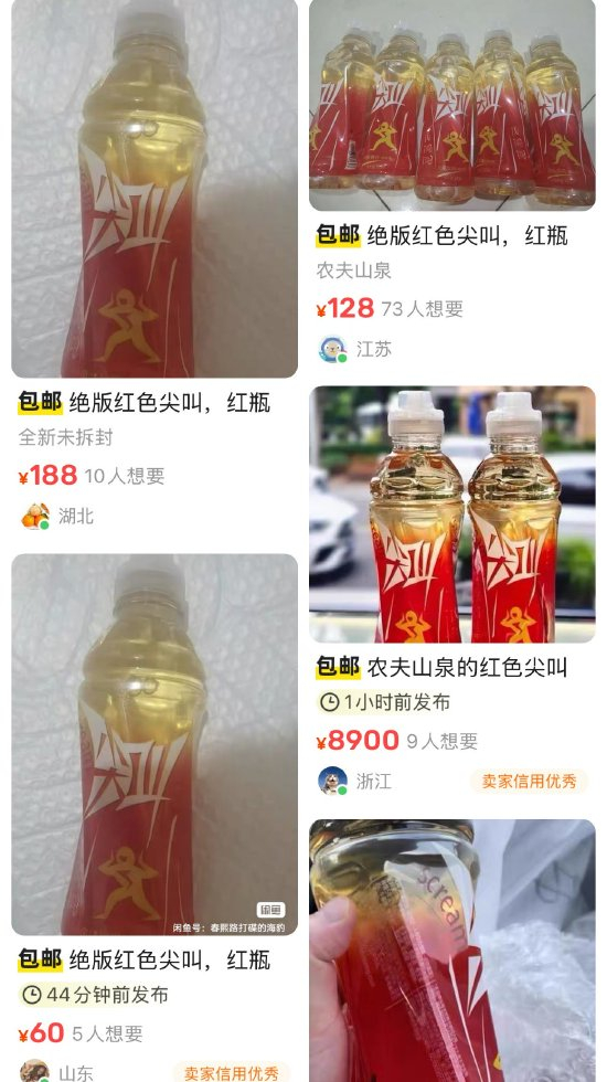 据了解,2024年9月,农夫山泉为庆祝尖叫品牌上市20周年,曾限时复刻红色尖叫,在天猫平台发售1万箱(15瓶/箱,售价75元),单瓶售价为5元,上线3天即售罄。但该饮料因“难喝”频遭吐槽,常被形容为“酸烟灰水”“腐烂草根味”。