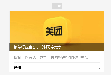 值得注意的是, 美团在10:10左右在官方公众号发文,承诺从自身做起,并积极呼吁行业共同构建良好生态,促进餐饮服务行业规范健康持续发展。
