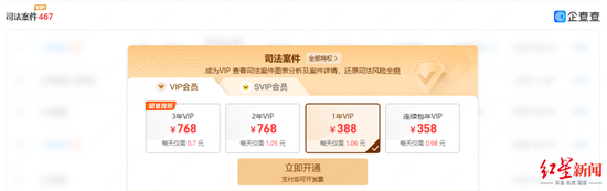 待陈女士想进一步查询相关情况时,却发现需开通会员。为了弄清楚情况,陈女士只好花费388元购买了一年的会员。结果发现,所谓的风险、法律纠纷等跟她公司没有一点关系,都是某广告公司的。