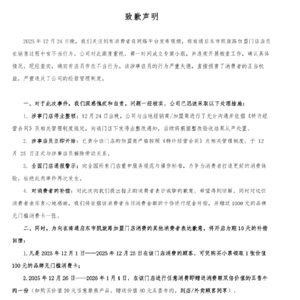 声明还表示,公司已迅速采取以下处理措施:涉事门店停业整顿、涉事店员立即开除、全国门店通报警示。此外,公司将依据该消费者当日消费金额的十倍进行现金补偿,并赠送1000元的品牌无门槛消费卡一张。同时,为向在南通启东市凯旋路加盟门店消费的其他消费者表达歉意,将开启为期10天的补偿回馈。此外,公司将在全国门店加强销售环节的透明化服务培训,欢迎广大消费者的持续监督,相关意见或建议经采纳或核实,公司也会给到不低于500元的品牌消费卡奖励。