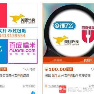 在淘宝,有商家挂出广告,直言代开外卖店。
