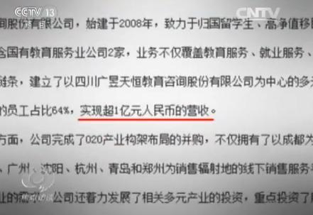 从谦合嘉业公司客户的账户往来看,他们的钱大多数是直接汇给了成都市一名叫某跃跃的银行账户或者转给了一个名叫某端云的支付宝账户,他们俩人共有的身份是天昱教育咨询集团公司的高管,这是一个注册资金为5000万元的公司。从公司这些成摞的资料来看,他们的业务开展得相当顺利,仅其中一家分公司2016年的营业收入就超过1亿元。