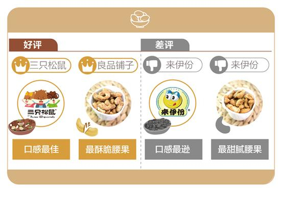 甜腻度: 来伊份>洽洽>三只松鼠>良品铺子>百草味