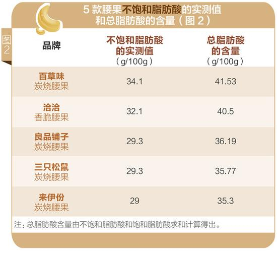 那5款坚果的不饱和脂肪酸含量如何?谁的油脂更为优异?