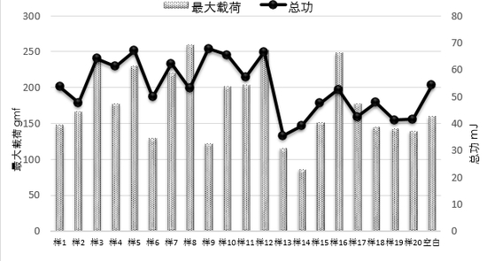 头发受到外界影响时,毛鳞片会翘起或损坏甚至剥落,使头发容易缠绕打结,难以梳理。比较试验通过测试染后头发梳理过程中的最大载荷和梳理过程做的总功两个参数评价其可梳理性,最大载荷和总功的测试数值越小,表明染后头发可梳理性越好(见图2)。图2中“空白”为未染色头发的最大载荷和总功数值。