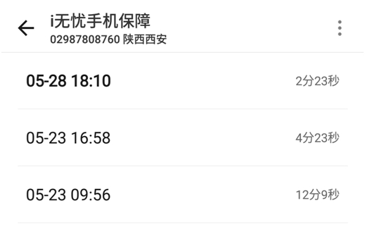 (下图:记者手机通话录音文件,“i无忧手机保障”抬头,为系统网络自动生成)