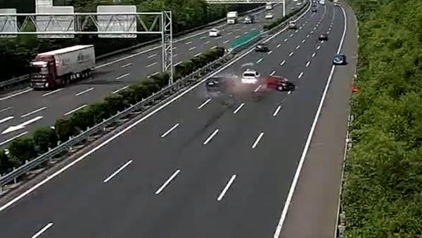 SUV定速巡航失效,撞护栏后引发后方多个事故
