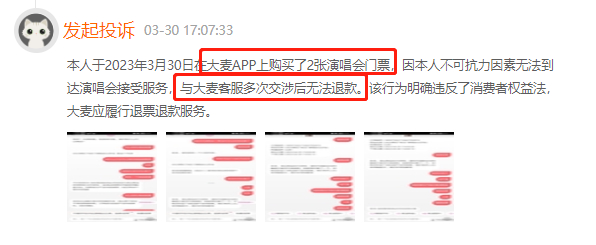 3月黑猫投诉娱乐票务领域红黑榜:大麦网不出票不退款