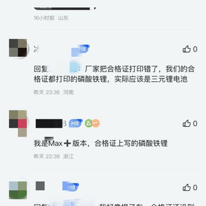 问界官方小助手于次日回复称,“经核实,部分问界M8Max+和Ultra出厂合格证中电池类型一栏印制错误,由此带来的困扰我们深表歉意。”