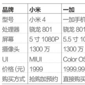 一加是OPPO的互联网品牌,一加手机基本就是公开市场售价2998元OPPO Find7的修改版。同样是骁龙801处理器,5.5寸1080P日系屏幕,1300万索尼imx214摄像头的顶级配置。在UI上,一加使用了OPPO的Color OS 2.0这套设计非常漂亮的UI,流畅性也很出色。在拍照方面,一加的画质出色,并且提供了多帧合成减噪模式。