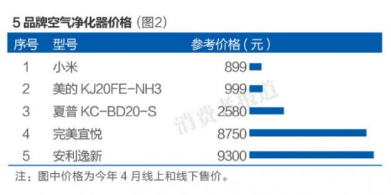 然而,由于门槛低、利润高,空气净化器市场鱼龙混杂,价格差异巨大,消费者难辨好坏。为此,2015年4月,《消费者报道》委托第三方权威机构对小米、美的、夏普、完美和安利这5个品牌的空气净化器做了一次对比测评。