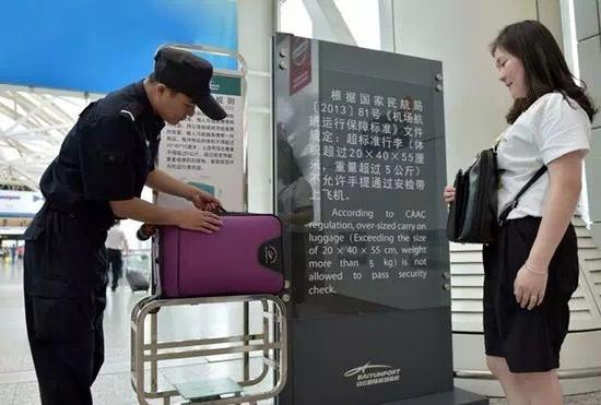 据记者了解,白云机场将联合各大航空公司在各个值机岛、安检口前放置“超规行李限制框”,设置“乘机行李检查线”,对旅客随身携带的行李物品进行严格把关,超规行李物品不能随身带上飞机。