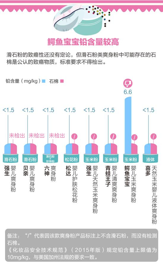 测评报告一:鳄鱼宝宝铅含量较高 滑石粉用于会阴处可能会致癌