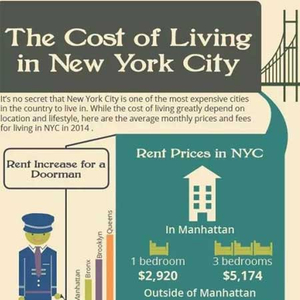 住:如果在曼哈顿地区一人独居每月要花费2920美金,在曼哈顿以外地区为1790美金