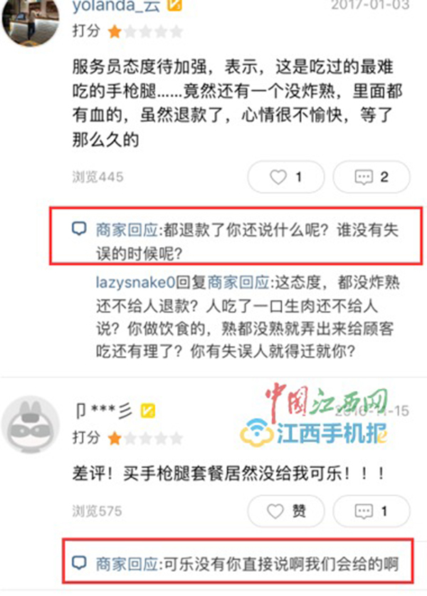 针对此事,2月4日,中国江西网记者致电美团网官方客服,“真实评价是顾客在体验完商家的服务之后内心的感受,是消费者维护自己权益的一种方式。我们(美团网)是禁止商家对顾客进行辱骂这种行为的。”