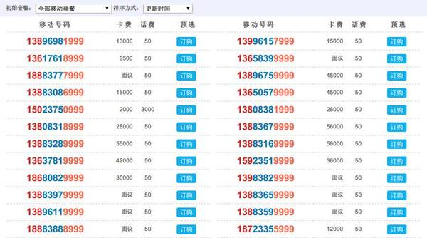 1、运营商渠道:虽说所有的手机号码都来自三大运营商,但手机靓号黄牛手中的大部分靓号都不是直接来自运营商。试想,尾号3个8,3个6的号码资源是极其稀少的,每次运营商只放出一个号码,也就十几个尾号3个相同的号码。