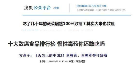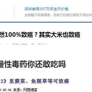 “鱼腥草会导致肾病肾癌”、 “蕨菜致癌”,甚至出现了“大米也会致癌”的谣言,这让消费者摸不到头脑,也让专家和政府部门啼笑皆非!