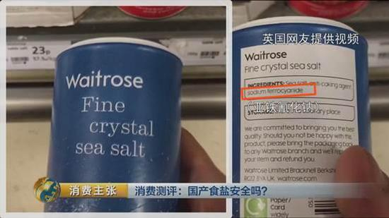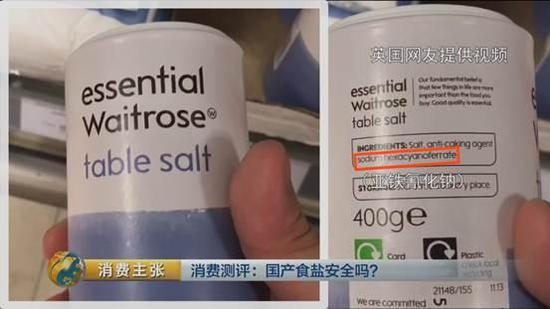 为了进一步求证国外食盐是否含有亚铁氰化物这一抗结剂,我们《消费主张》栏目组向海外网友寻求了帮助,随后陆续收到了来自美国、英国和法国网友发来的所在地超市的视频。