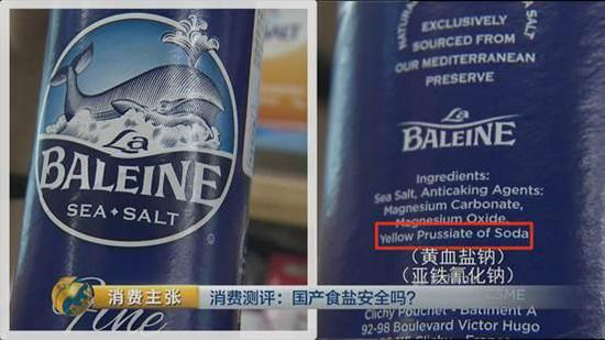 但是,记者也发现有来自4个国家的5款盐都添加了一种叫做亚铁氰化钠的抗结剂。他们分别是产于意大利的阳光细粒海盐、产于荷兰的莫盾牌无碘盐、产于法国的鲸鱼牌粗海盐180g和产于法国鲸鱼牌美国细海盐750g以及产于澳大利亚的亚赛克萨烹饪海盐。