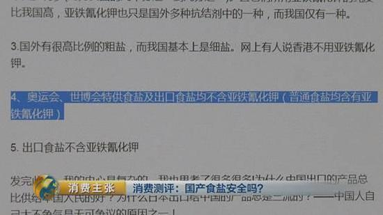 央视辟谣:国产食盐添加剂堪比砒霜 纯属胡说八道