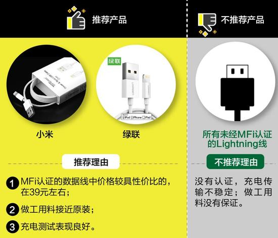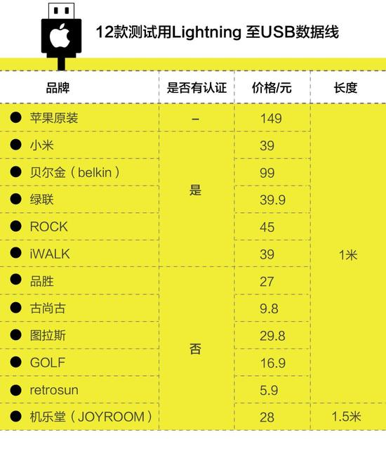 《科学中国》曾将11款第三方Lightning线(5款经MFi认证,6款无认证),与苹果官方Lightning线进行对比测试。