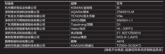 ●样品:根据消费者调查、大数据分析进行初步筛选,样品功能须涵盖指纹、密码、磁卡3个测评项目,再从天猫、京东、苏宁3个电商平台里筛选出销量最高、价位最优惠的20个型号