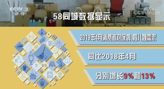 2019年4月消费者对保姆、育儿嫂的需求同比2018年4月分别增长9%和13%。