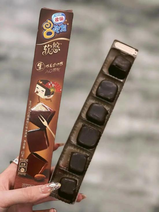 将竖着的手拿冰淇淋变成横着的盒装冰点心,体积变大了、可以坐下来慢慢吃,比如钟薛高的糕;或者像雀巢生巧冰淇淋8块分享装,不用尴尬地你咬左边、我咬右边,冰淇淋也能当社交货币。