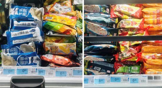 放眼望去找不到低于5块的,每根35元的哈根达斯甚至略显平平无奇。好不容易发现最便宜的过气网红咸蛋黄,冰柜里早就新人换旧人。