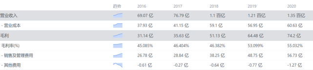 有加拿大鹅的表率在前,波司登很快开始摸着加拿大鹅过河,2018年,波司登通过走上秀场增强消费者对于波司登高端品牌的认同感,同时通过提价来抬升产品的高端定位。这一策略之下,波司登迅速腾飞, 2018年,波司登的营业收入直接跨入百亿关卡,毛利率也在逐年上升,到了2020年,波司登的毛利率已经达到了55.032%,甚至于可以和一些互联网公司相媲美。