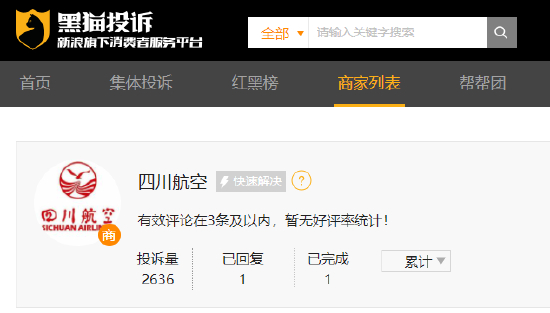 2月黑猫投诉航司领域红黑榜——川航改签后航班取消,拒退改签费