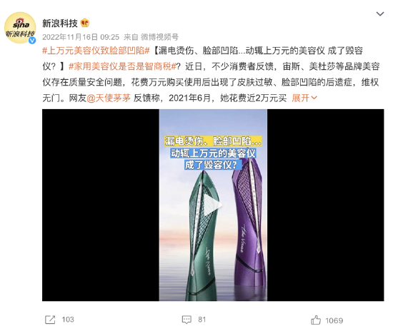 据新浪科技消息,有网友反馈自己花费近2万元买了美杜莎美容仪,在10月的一天晚上做面部周护理向上提拉时,做完右脸发现有两道深的凹陷。皮肤科医生告诉她,凹陷恢复不了,需要做填充。但商家拒绝承担填充费用和退货。