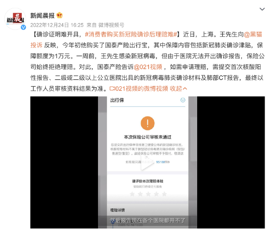 消费者购买新冠险理赔证明难开具